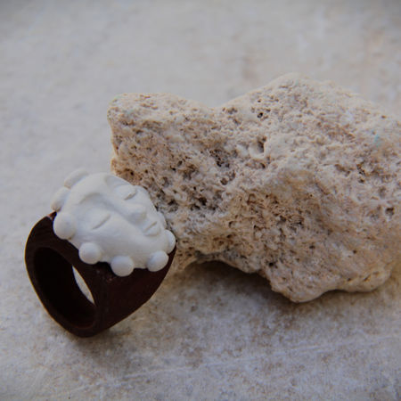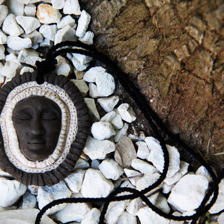 Non si tratta di semplici accessori, ma di amuleti contemporanei, sculture in miniatura che racchiudono volti, simboli, emozioni. Ogni pezzo è unico, irripetibile, espressione di una bellezza imperfetta, arcaica, autentica. Un volto chiuso in sé, una bocca silenziosa, un'espressione sospesa che racconta molto più di ciò che mostra.